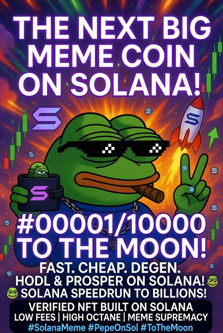 š PEPE just lit his blunt, put on the pink-purple laser shades, fired up the Solana rocket, and declared: āTHIS IS THE NEXT BIG MEME COIN ON SOLANA!!!ā š